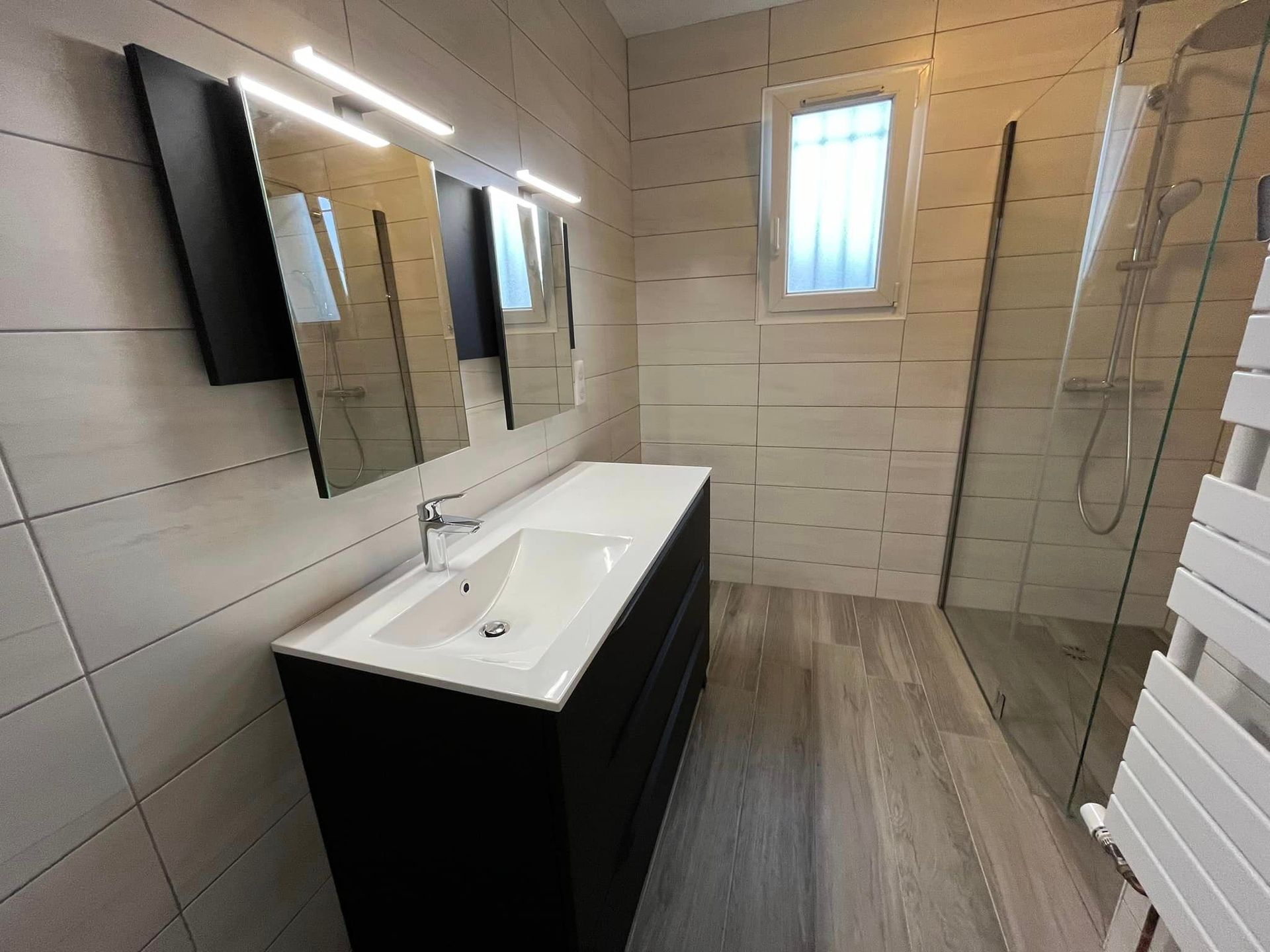 Quels que soient vos souhaits concernant cette nouvelle salle de bains, nous sommes en mesure de les réaliser. Douche à l'italienne, baignoire, double vasque, faïence murale, carrelage, etc... nous mettons l'ensemble de nos compétences à votre service.